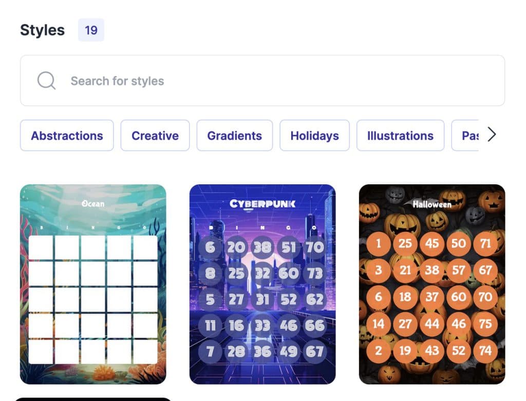Enhance the visual appeal of your bingo cards with our integration with Unsplash. This feature allows you to quickly add high-quality, royalty-free images as backgrounds to your cards, giving them a professional and personalized touch.